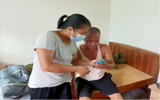 敬老院工作人員向老人講解如何辨別詐騙電話和詐騙短信,提高老人防詐騙意識